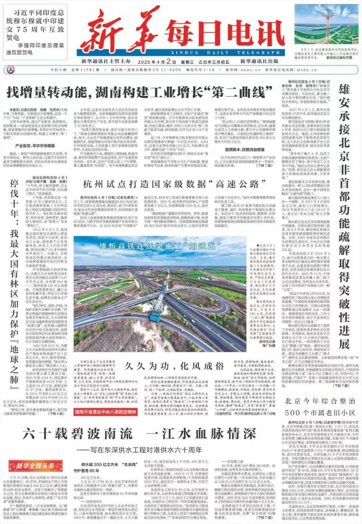4月2日,《新华每日电讯》头版头条刊发稿件《》,看湖南的产业裂变、提质降本与创新驱动。
