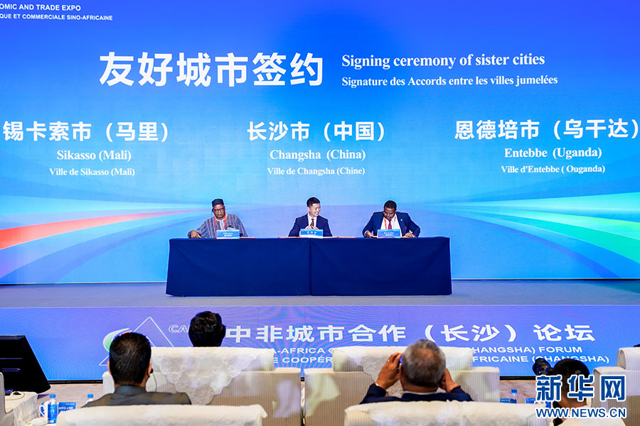 新华网长沙6月30日电(刘扬)6月30日,中非城市合作(长沙)论坛举行。与会城市代表围绕“深化中非合作、共创美好未来”论坛主题,交流和探讨城市合作可持续发展的方向、领域和路径。中非双方城市发布了《中非城市合作长沙倡议》,长沙市人民政府与乌干达恩德培市政府、马里锡卡索市政府进行了友好城市签约。