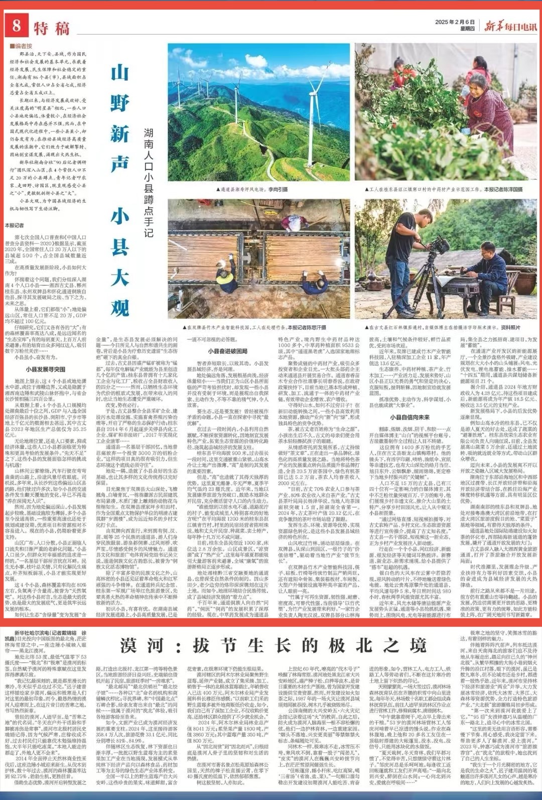 2月6日,新华社《新华每日电讯》刊载深度报道《山野新声 小县大观——湖南人口小县蹲点手记》,聚焦湖南人口小县的高质量发展。