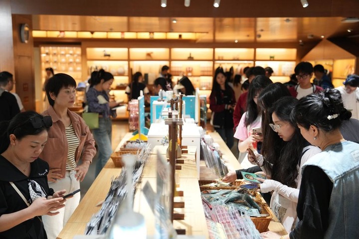 2024年5月16日,游客在湖南博物院选购文创产品。新华社记者 薛宇舸 摄