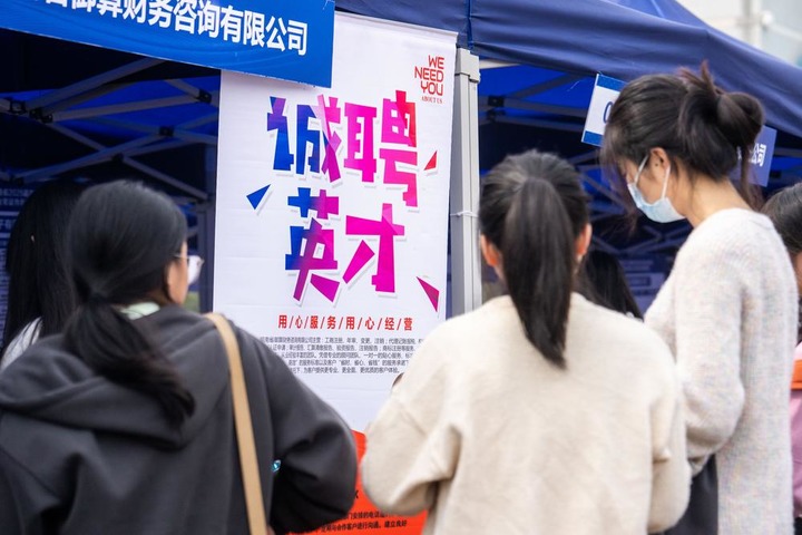 2024年10月29日,在长沙学院天健体育场,求职学生在了解招聘信息。当日,湖南省2025届高校毕业生就业促进月活动启动。新华社记者 陈思汗 摄