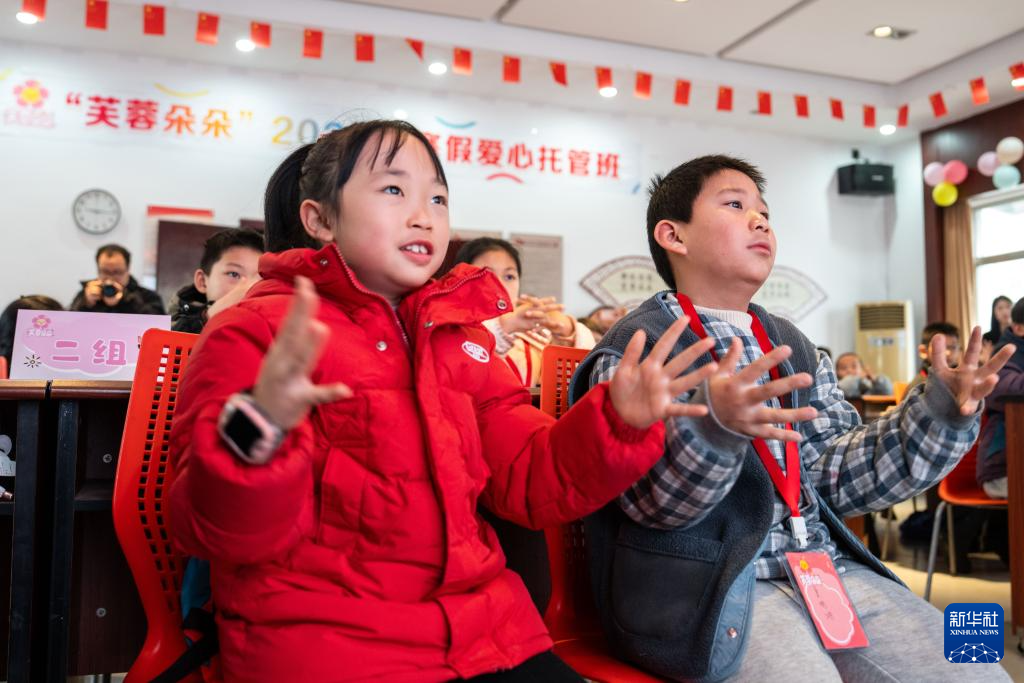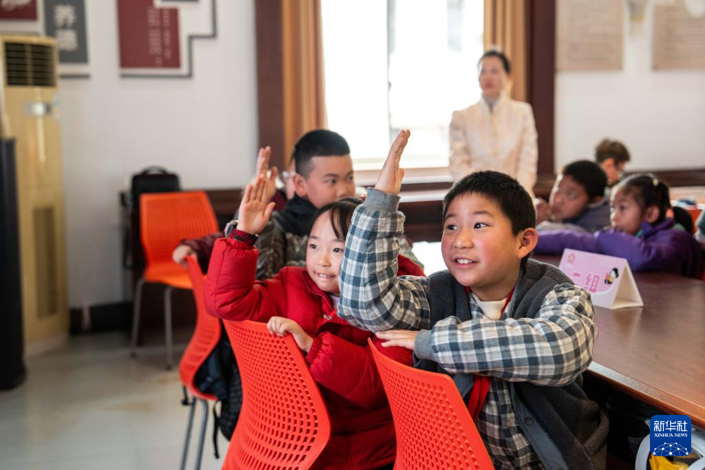 2月1日,在芙蓉区识字里社区服务中心,学生们举手回答问题。新华社记者 陈思汗 摄