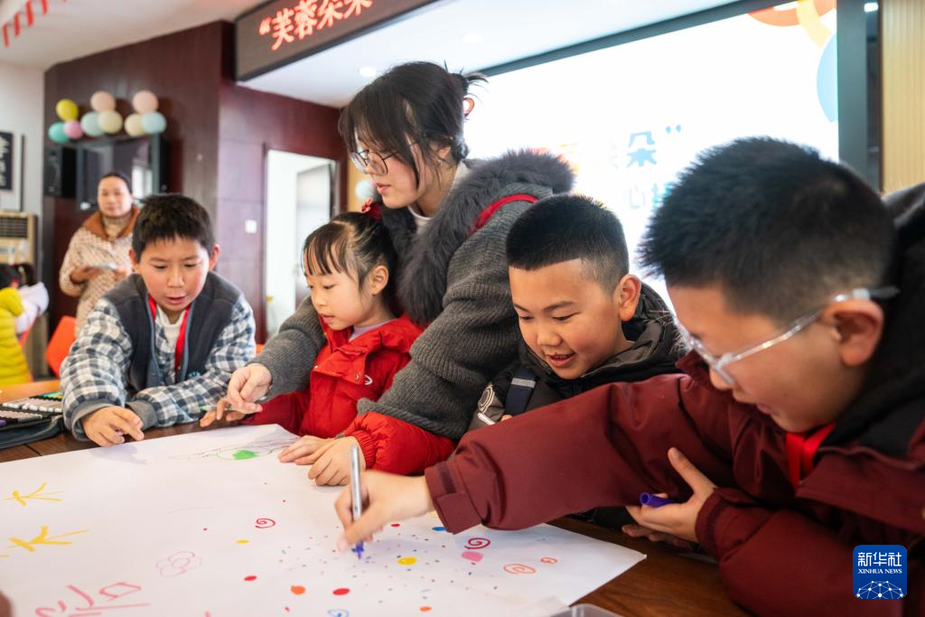 2月1日,在芙蓉区识字里社区服务中心,学生们在课堂上画画。新华社记者 陈思汗 摄pagebreak