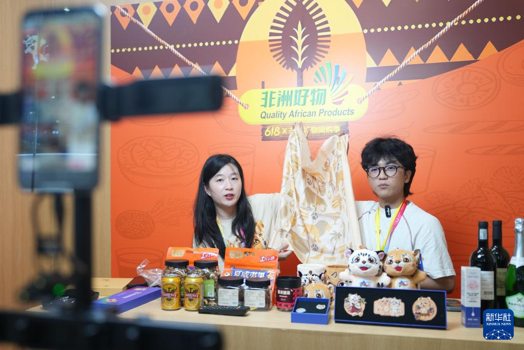 6月12日,在长沙国际会展中心,主播在直播间内介绍非洲商品。新华社记者 薛宇舸 摄