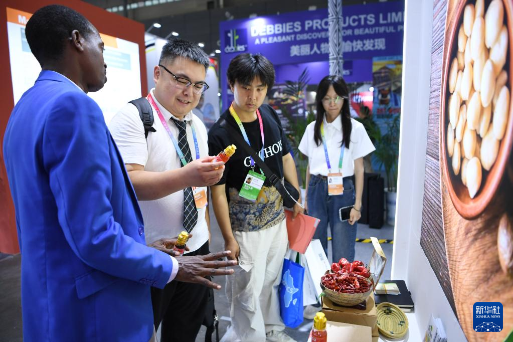 6月12日,在长沙国际会展中心,参观者在南非展台咨询。新华社记者 王婧嫱 摄pagebreak