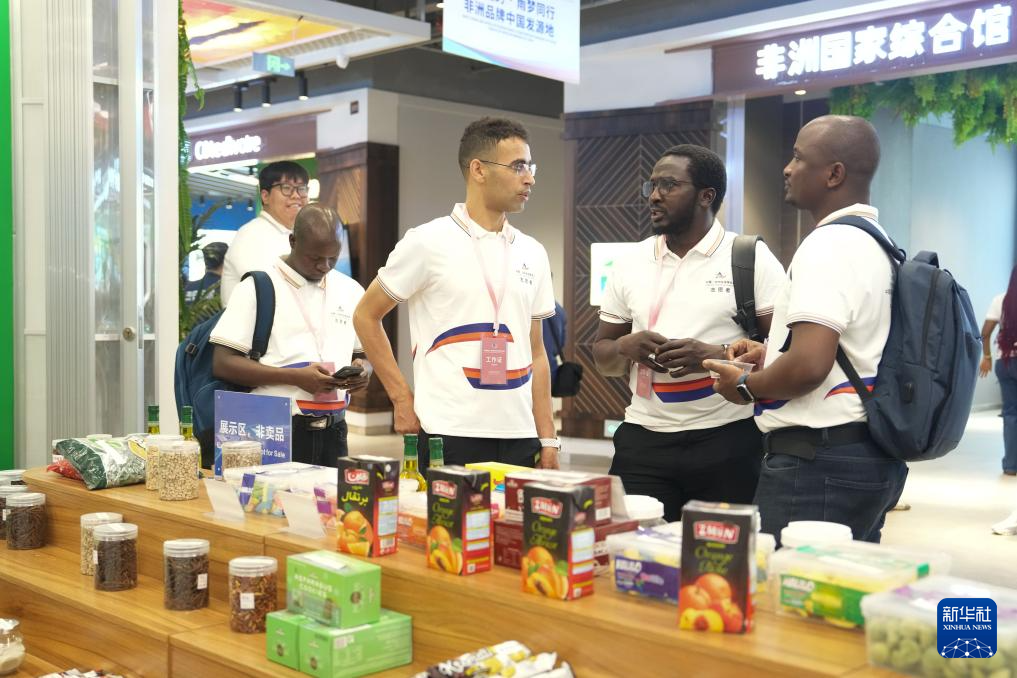 6月12日,志愿者在第四届中国-非洲经贸博览会高桥分展馆查看商品展示情况。新华社记者 薛宇舸 摄pagebreak