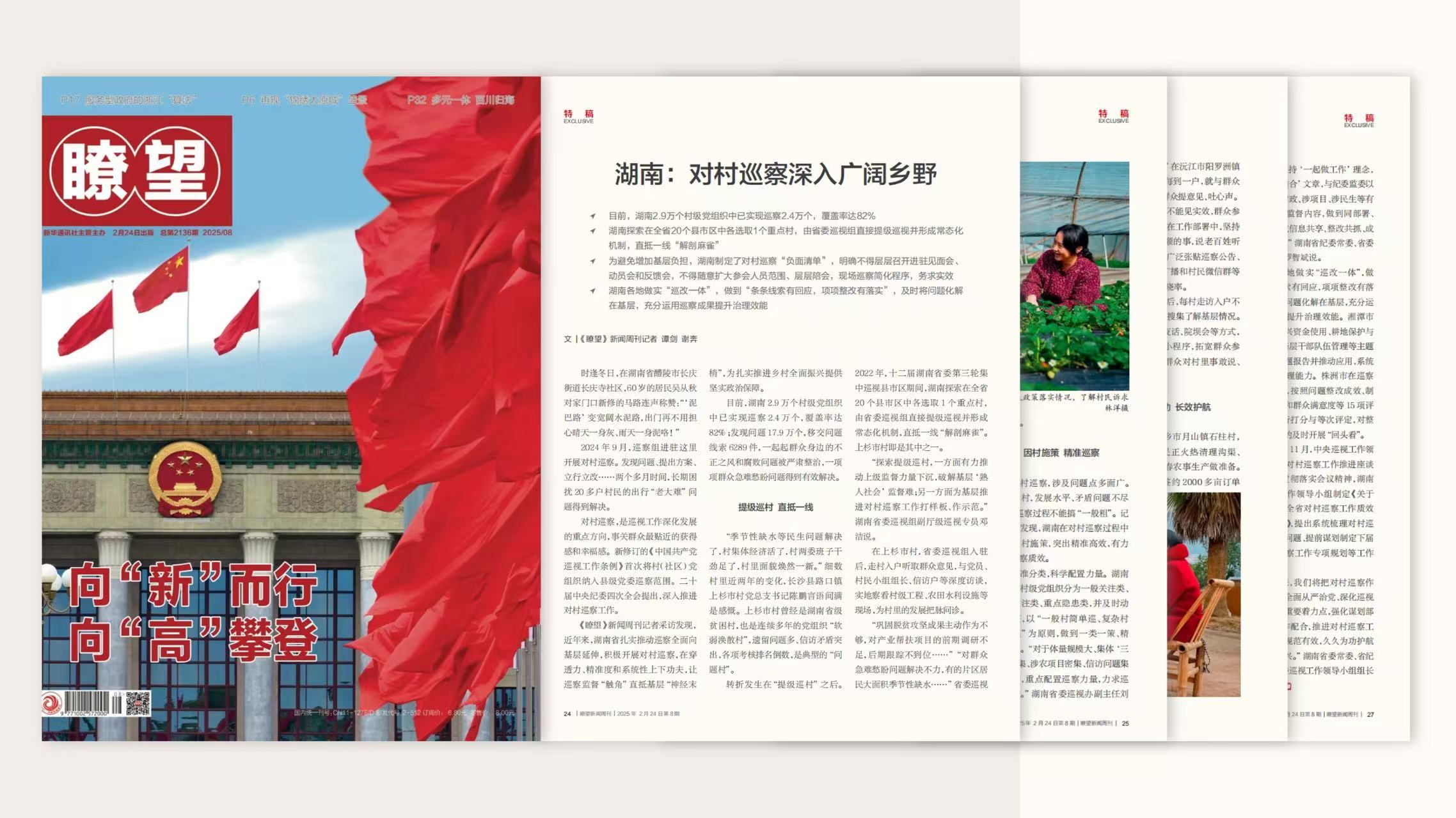 2月24日,《瞭望》新闻周刊(2025年第8期)刊发深度报道《湖南:对村巡察深入广阔乡野》,透过记者的观察与思考,看湖南开展对村巡察,延伸监督“探头”,有力护航乡村振兴的探索与作为。