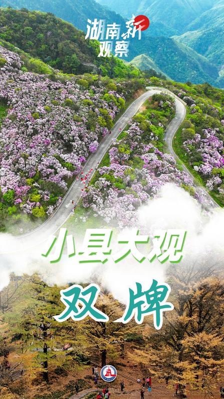 深度挖掘资源潜能促旅游发展,双牌目前已创建国家4a级景区3个、3a级景区2个,连续多年举办的“和”文化节成为文旅融合发展名片。双牌阳明山国家森林公园被称为“生态宝库”“天然氧吧”,旅游康养已成为当地“金字招牌”——春天,连绵起伏的万亩野生杜鹃红遍山野;夏天,22度的清凉气温使其成为避暑好去处;冬天,漫山遍野的冰雪雾凇美景让人叹为观止。据统计,2024年双牌共接待游客人数532.32万人次,同比增长8.85%,实现旅游总收入53.12亿元,同比增长9.25%。