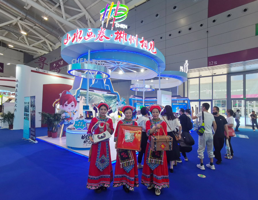 作为第二届湖南旅游发展大会承办地,郴州首次在文博会设馆参展。郴州市文旅广体局刘嫙子介绍,“这次我们带来了近200件展品,既有郴州文旅‘八张名片’的风光展示,也有‘郴品郴味’地方特产和‘郴心郴意’文创产品,让‘山水画卷’更立体更丰富”。